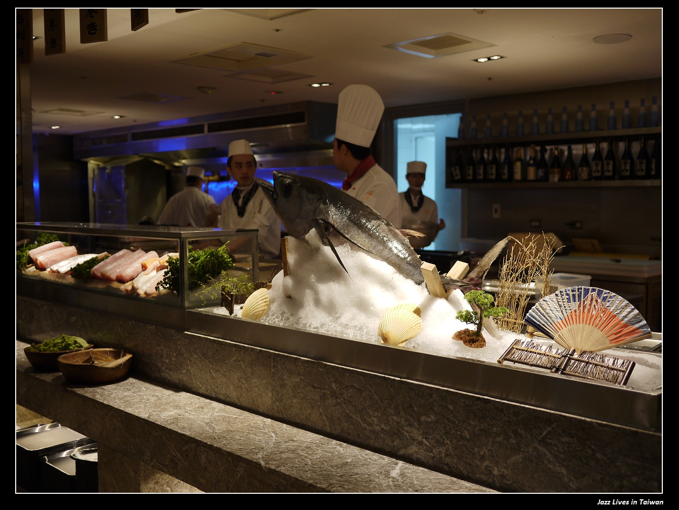接下來帶大家來到的是位於入門口後左手邊的日式區, 這也是台灣人習慣一進場吃自助餐第一個廝殺的戰場,
