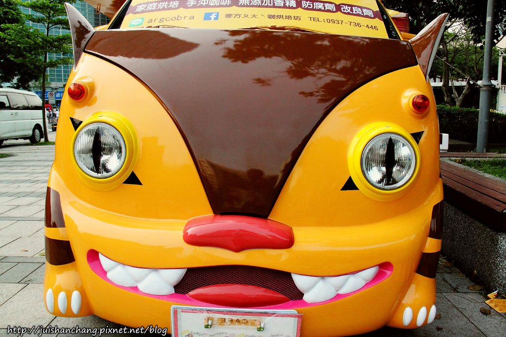 小珊珊在FB看到朋友分享,捕捉這台在桃園大街小巷裡啪啪走的超卡哇伊龍貓胖卡,今天(2014.4.4)竟然開到台北101來了!!!