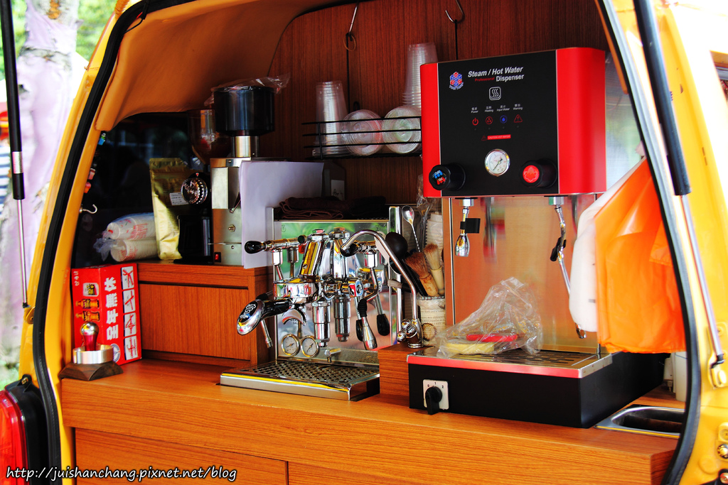 龍貓小巴行動咖啡車,主要販賣手沖咖啡、奶茶、現烤菠蘿麵包、厚片土司………等等