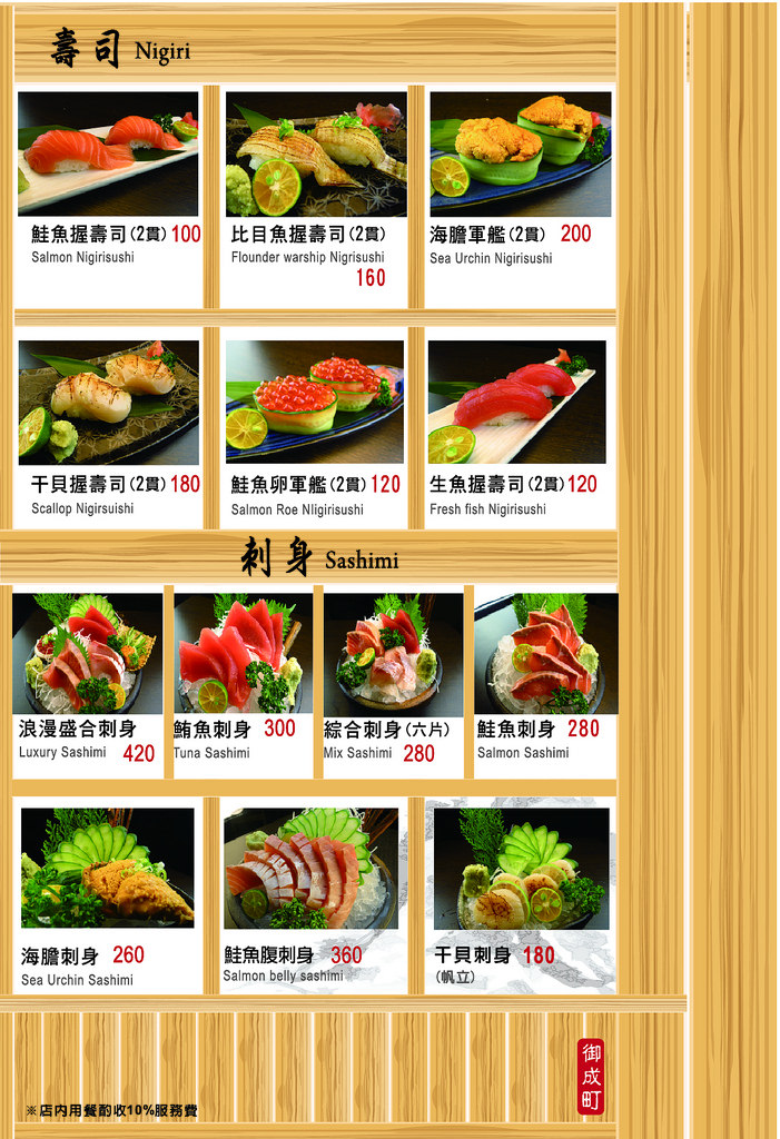 這裡也提供像天婦羅或刺身 (生魚片) 等選項
