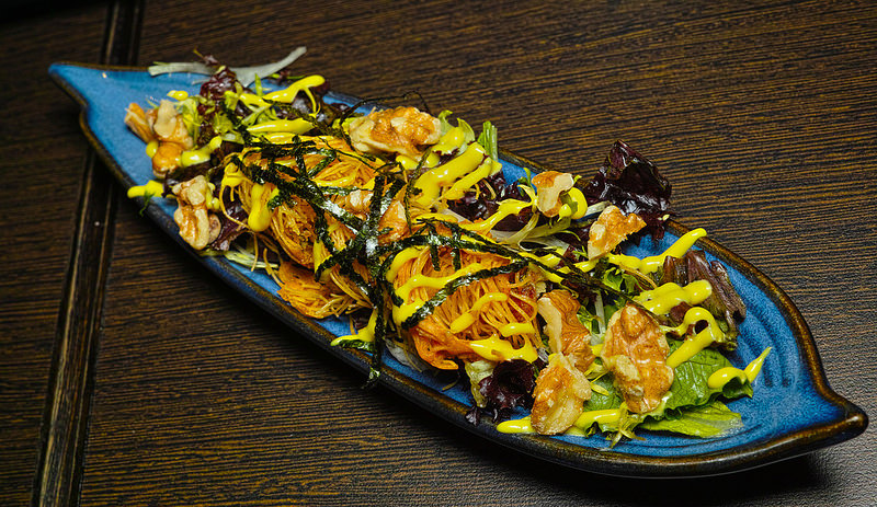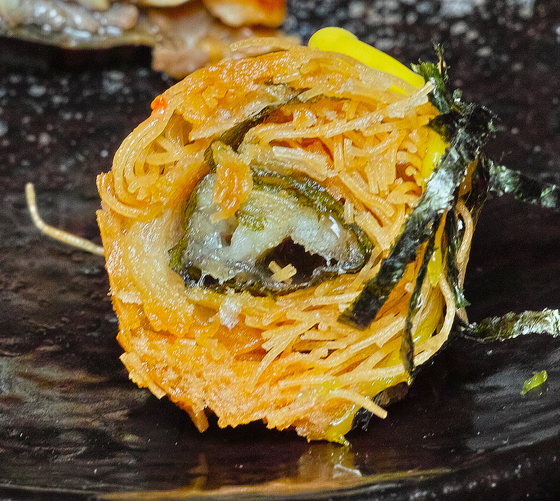 更特別的一道, 炸的很酥脆的麵線(大概就是黃金甲, 還蠻像的) 中間包著鰻魚, 外層則加上蜂蜜芥末和海苔
