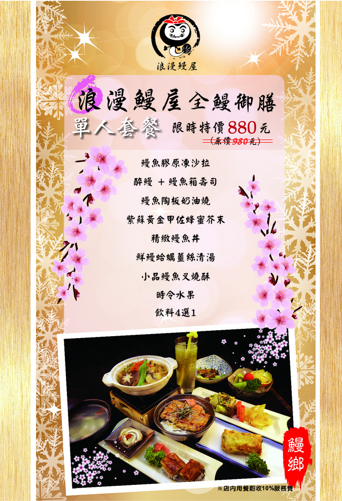如果一個人想要來吃各種鰻魚料理的套餐, 880 就可以吃到一大堆不同口味