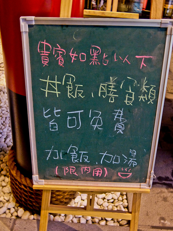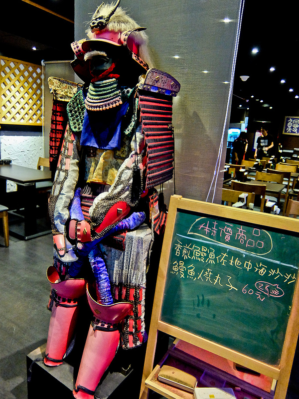 進門後則是第一眼看到這付很酷的日本鎧甲, 旁邊的黑板上有當日的特價商品
