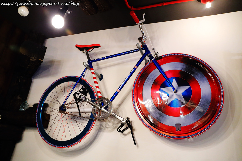 最吸睛的就是牆上那台超級英雄美國隊長腳踏車,超帥的啦!