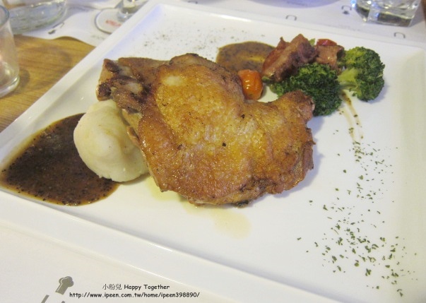 哈哈....原本的擺盤是把兩塊雞腿交疊在一起
