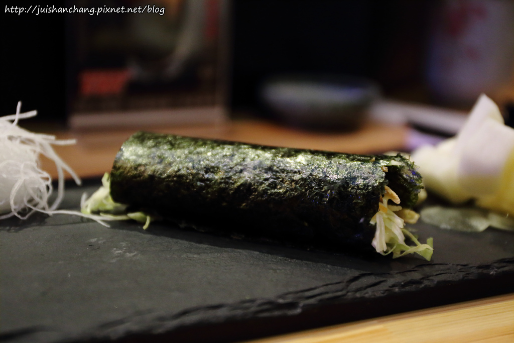 牛蒡壽司,海苔的脆度跟牛蒡絕配,炸的脆脆的牛蒡,咬起來卡茲卡茲的,一點點甜甜的,口感很好