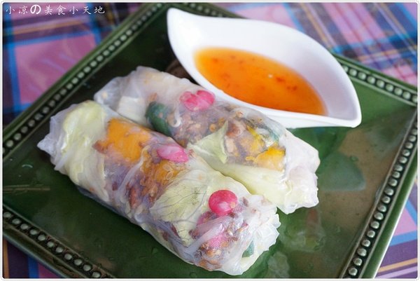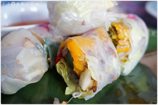 以蔬果在搭配生菜再以涼捲包覆,沾點特製的越南酸甜醬滋味無窮!