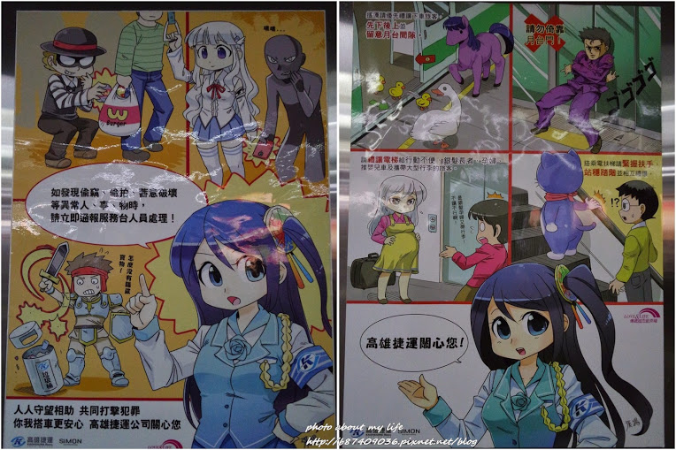 當天坐著捷運從後驛、鳳山、大東、美麗島到西子灣站一路在高雄趴趴走 發現高捷海報萌到好可愛❤