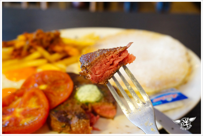 兩個都讓人難以選擇,但阿胖肚裡的陽春麵正是要補充牛肉的時候,所以就選國王牛排早午餐吧。