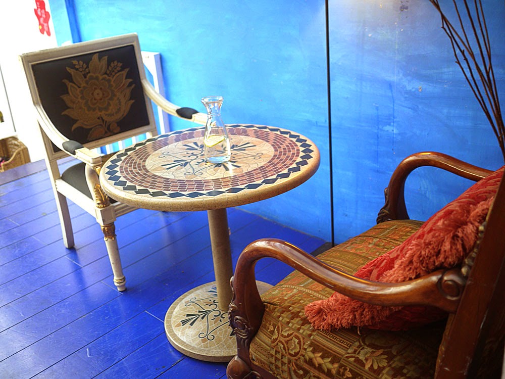海洋系的小區域,搭配優雅的桌椅,這是屬於情人的小空間,在愛情的國度中,也意味著珍貴,不願放棄的情懷,以及那永不妥協的獨特調調。