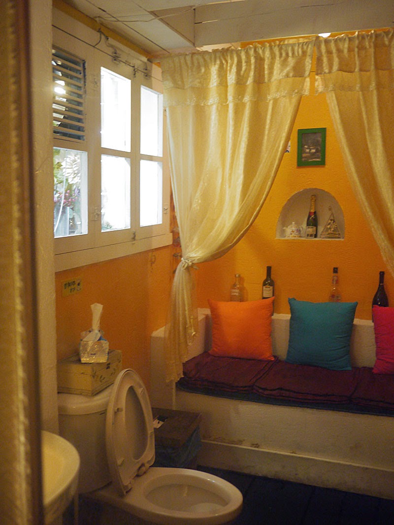 最後我們來到的是最深處的地方....竟然是在粉紅色的大床上用餐耶!超級浪漫的阿!黃色的燈光下,牽起她的小手,輕聲細語地說情話,噢不...這簡直會讓女孩失心瘋!