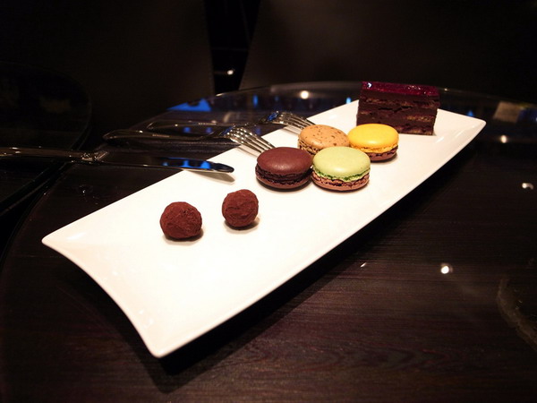 (馬卡龍,松露巧克力與覆盆子巧克力蛋糕)