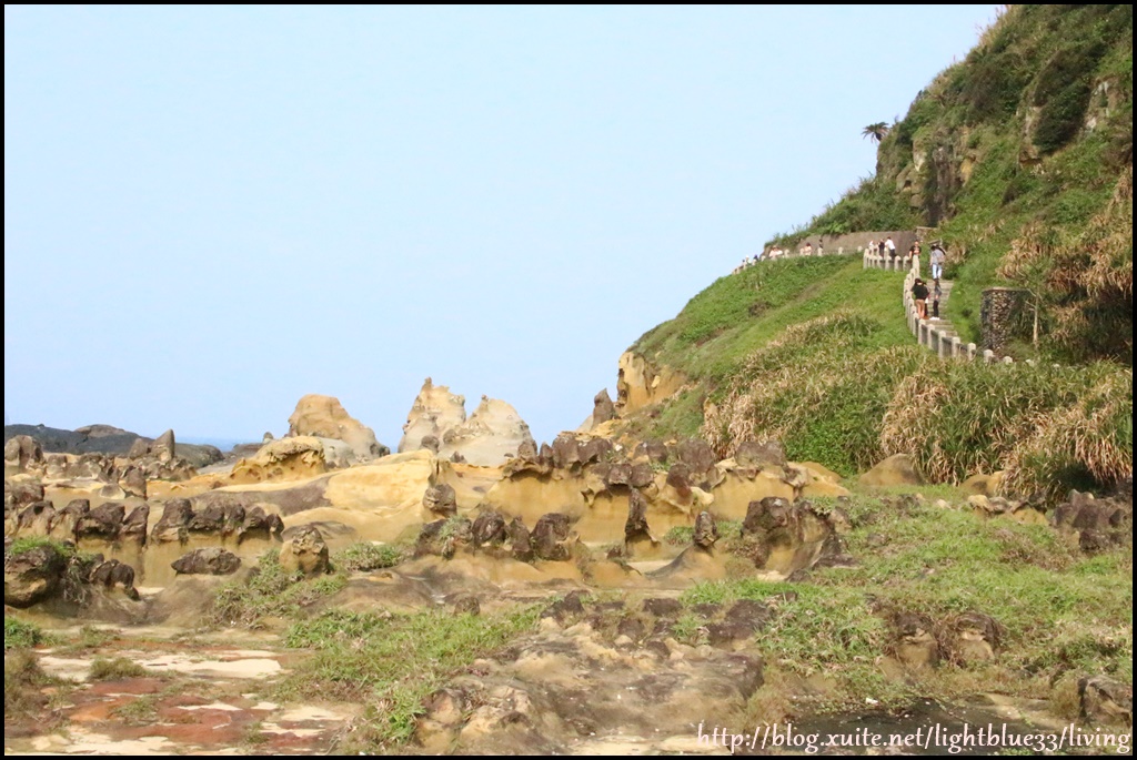 沿著階梯而上,可以從上而下眺望岩石加海景
