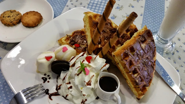 餐點部份,因為剛吃過午餐,來點一份巧克力鬆餅。