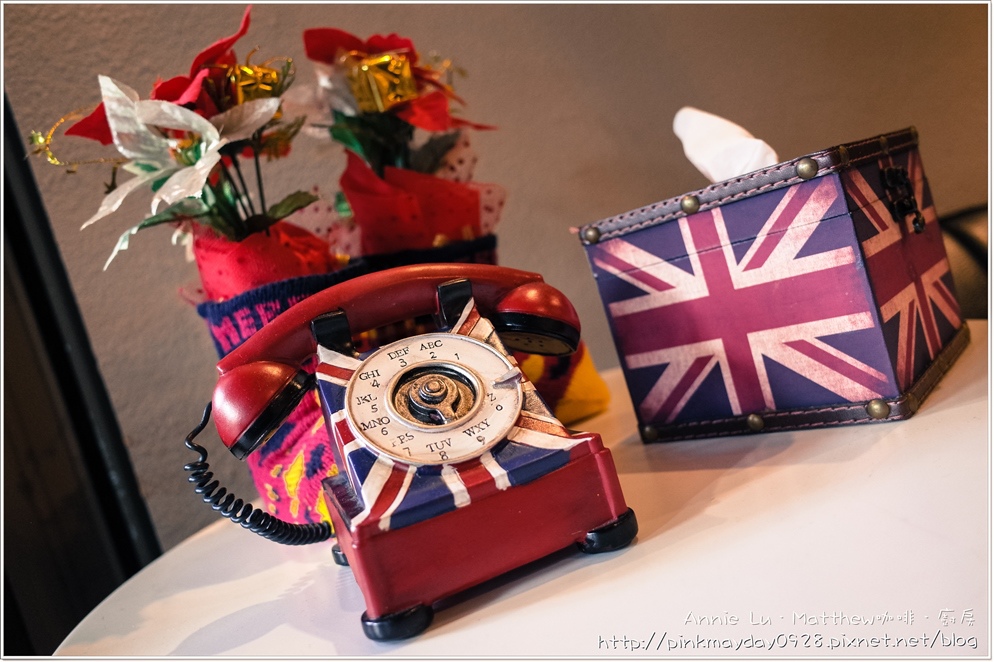 友人就是因為這英國風的電話跟面紙盒才被吸引選擇來這裡用餐
