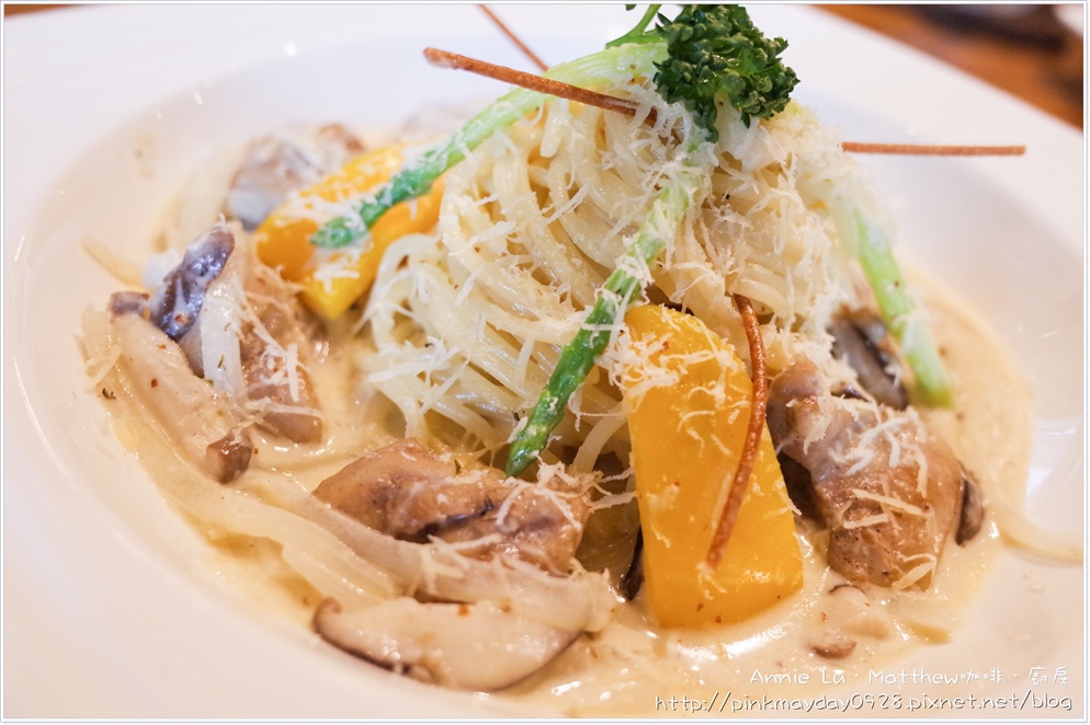 白醬的部分頗濃郁,雞肉口感野蠻嫩,還有許多香菇切片
