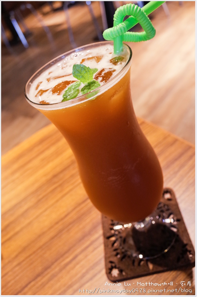 紅茶加上芒果醬(我猜應該是芒果醬啦XD)