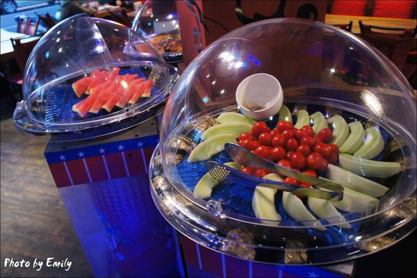 自助式濃湯、咖啡、飲品及簡單的水果吧檯,當季新鮮水果,無限免費供應