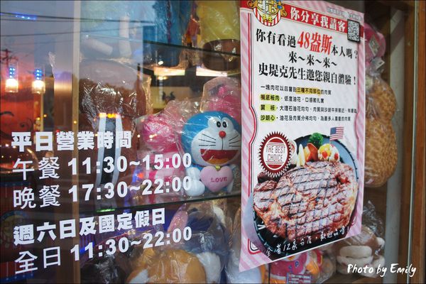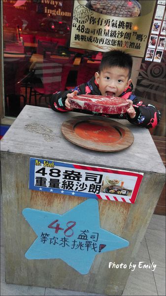 店門口張活動,你有勇氣挑戰48盎司重量級的牛排,就贈送精美禮品!