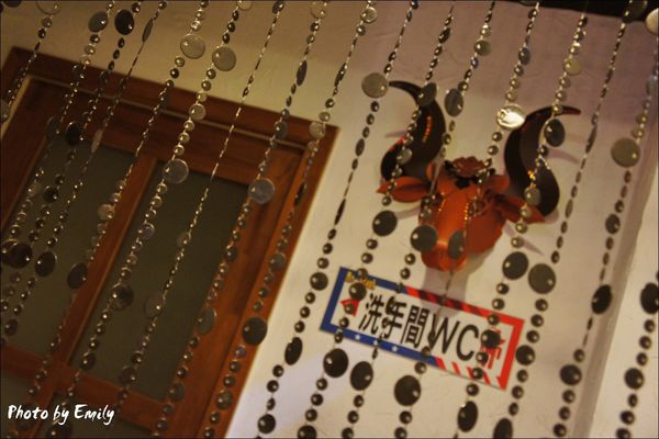 化妝室也要這麼閃閃發亮門廉,牆面掛上立體牛頭裝飾品