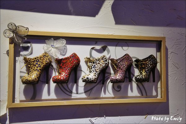牆面還能發現特別復古風的小物,爆紋高跟鞋裝飾品