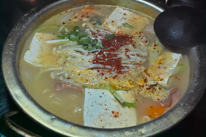 口味偏淡, 石鍋很燙, 擺久些會有點微焦的口感