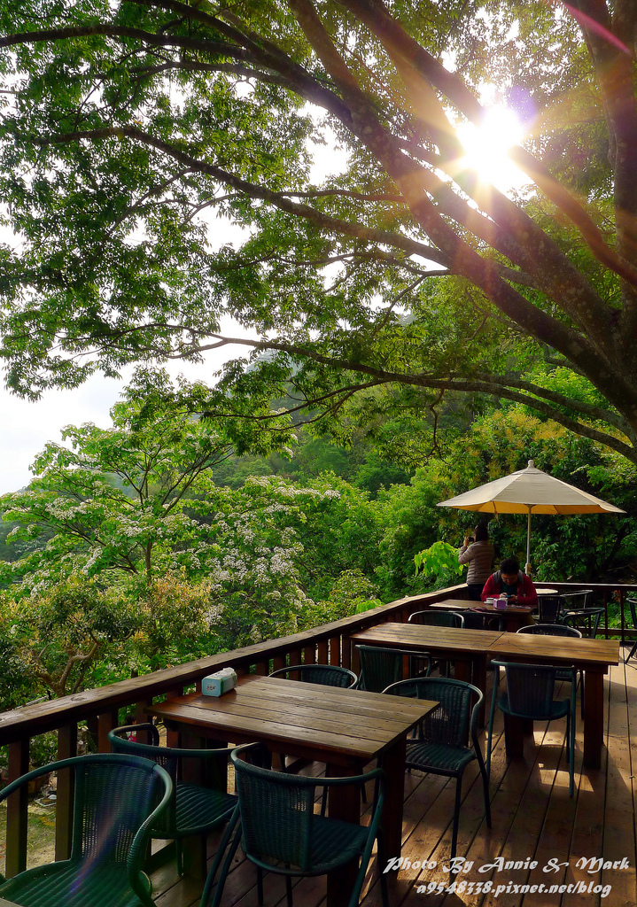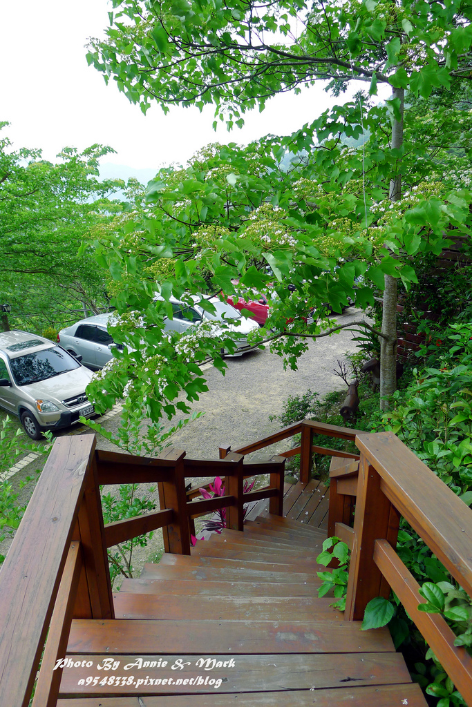 停好車後,沿著木棧階梯爬上咖啡廳,