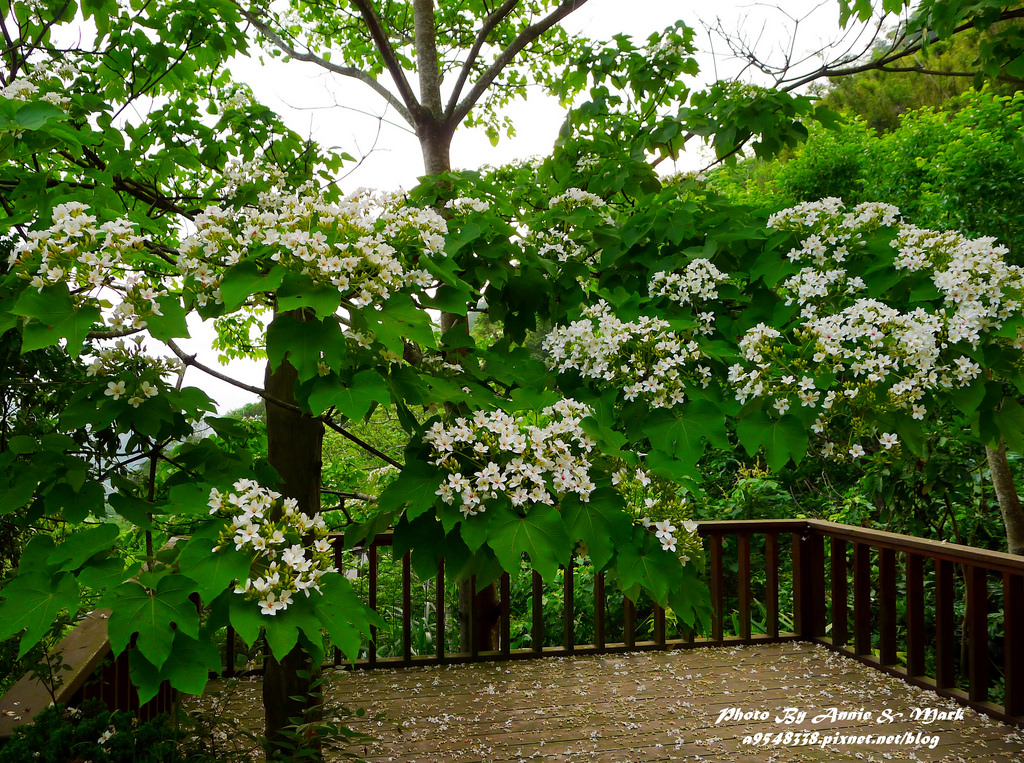 相隔不到10公尺,另一邊的桐花樹都還是花苞,花沒開幾朵!