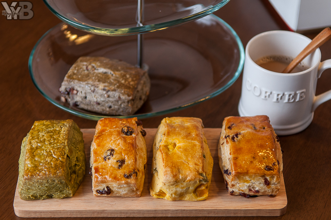 司康的尺寸相當實在,共有五款不同口味,還有不少口味加入健康養生的果乾和堅果,感覺非常有健康概念~