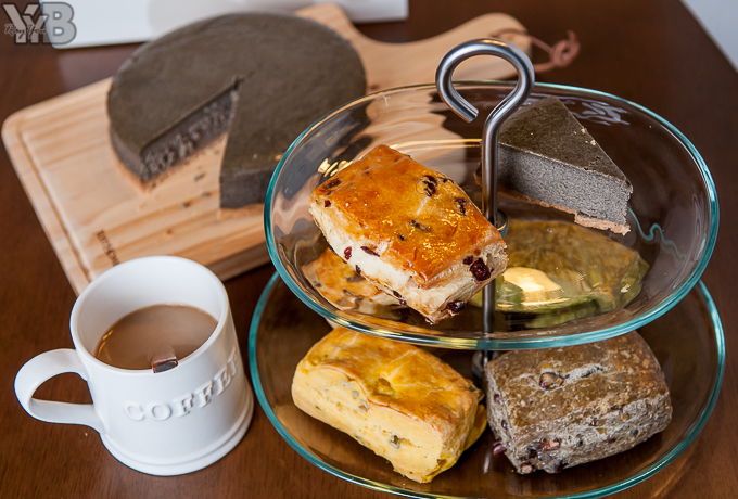 把所有的司康和黑芝麻起司蛋糕一起放在雙層碟上是不是覺得非常賞心悅目 XD