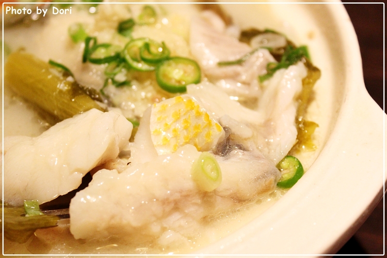 這是一道湯品料理,可以看到煨煮至白色湯頭裡的黃魚載浮載沉,二話不說就想撈一片到碗裡,提起這湯頭可說是每個人都喊鮮!
