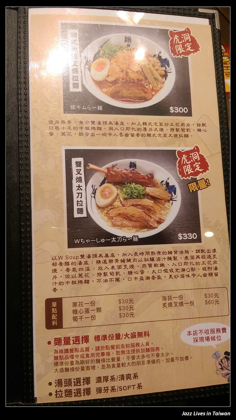 這一面的虎洞限定還有韓式泡菜叉燒拉麵與雙叉燒太刀拉麵, 這就是每日限定30碗的拉麵, 每間店也都有這樣的噱頭,