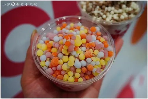現場冰櫃裡的樣子,好像一盆一盆色彩繽紛的珍珠,可惜不是現場製做,