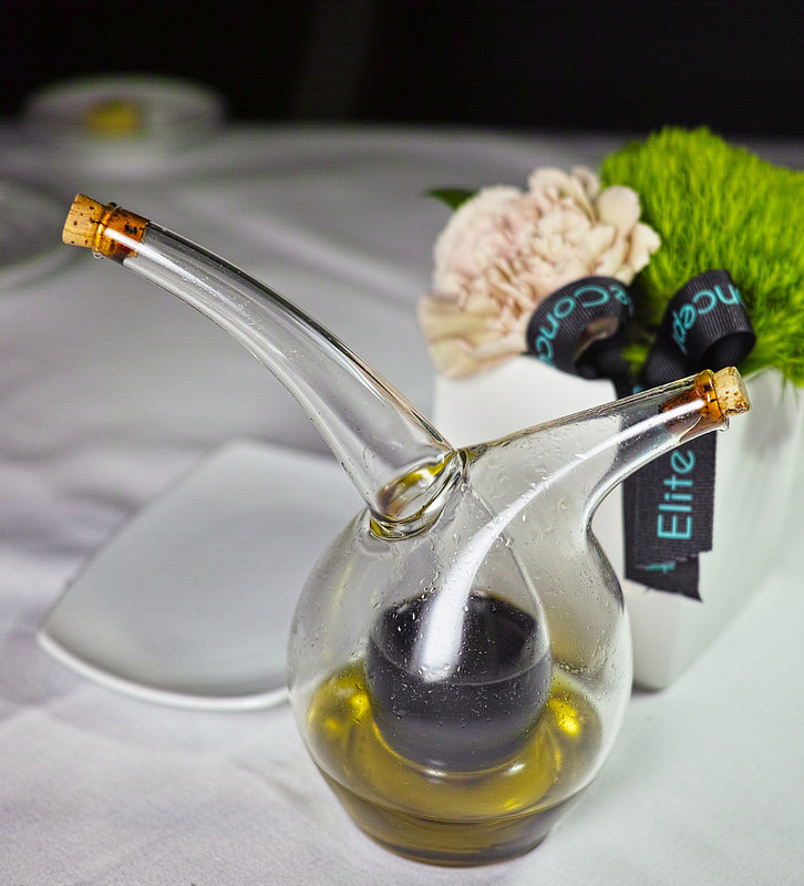 每桌上都先擺著一個很漂亮的罐子, 這裡面裝著15 年的Modena 巴薩米可醋 和初榨特級橄欖油