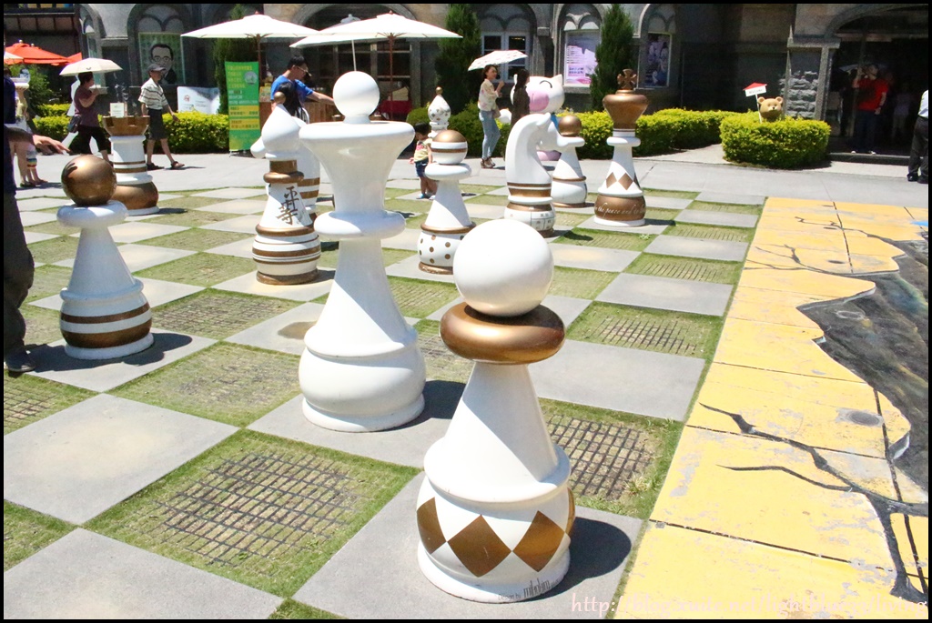 順著路往下走就可以到城堡跟廣場啦,西洋棋盤上隨時都有人在拍照
