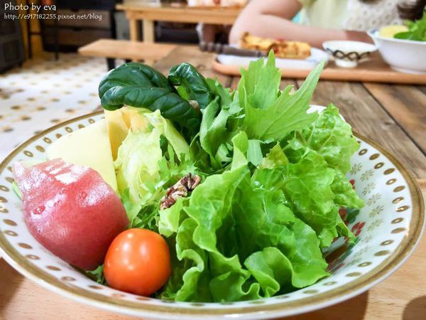 蔬菜方面店家使用台南巨農的有機蔬菜,搭配義大利頂級唐喬凡尼巴薩米克紅酒油醋醬,