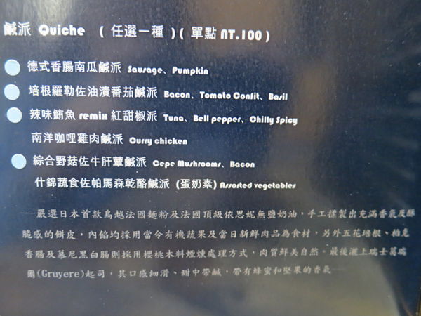 鹹派 單點$100 (早午餐任選一種)/有貼貼紙的表示當天所供應的口味