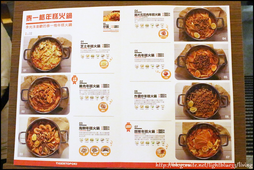 除了年糕火鍋之外也有一些不同選擇可搭配,官網有完整菜單可看