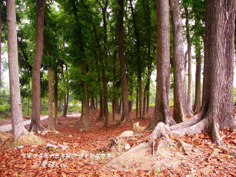 一大片的落葉.落在這樹林裡
