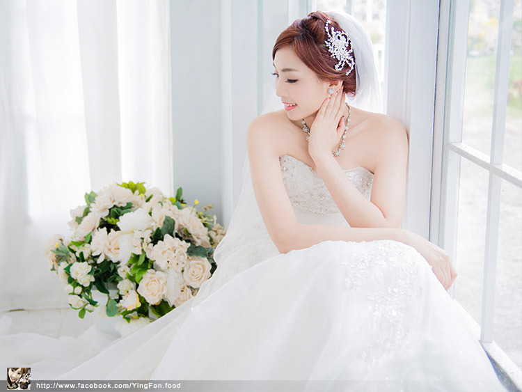 室內棚內場景,這裡很適合拍浪漫的白色婚紗,背景都是白色比較多,有幾盆粉色白色的花。
