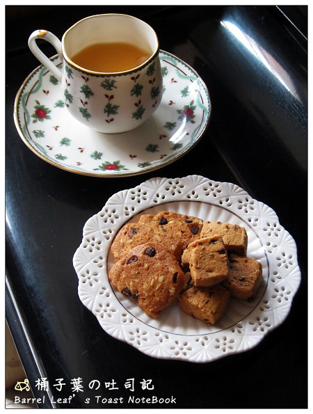 也是還不用吃~就可以見到不少葡萄果乾埋於餅乾麵粉體裡頭,同時飄散著奶香氣息。