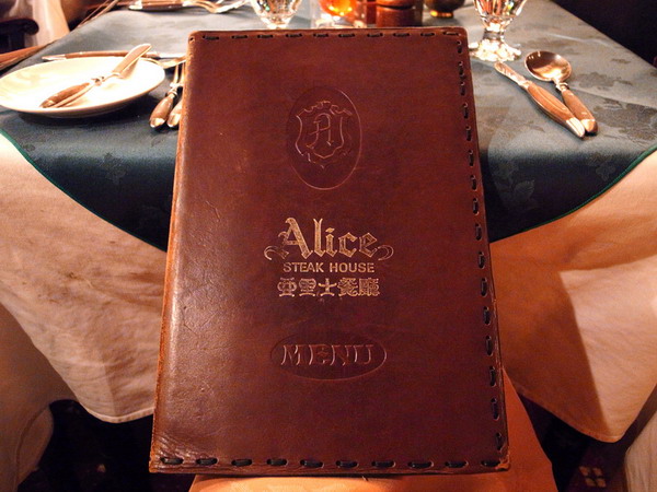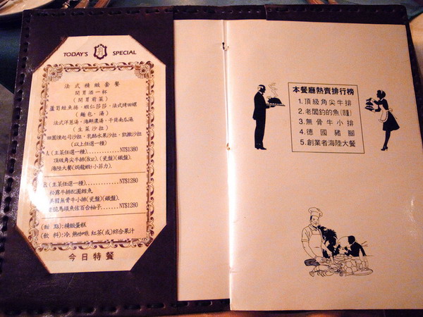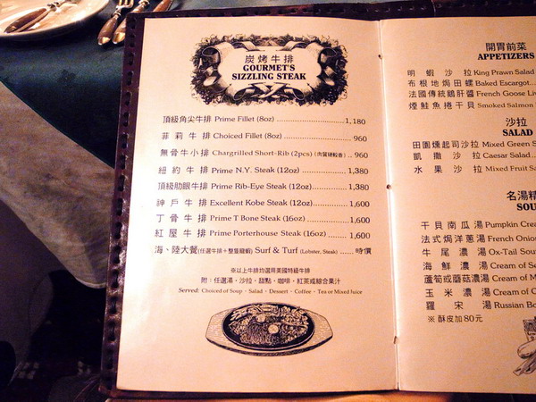 在服務生引導入座後看著桌上那昏黃的燭光,手上端著復古的皮質菜單,