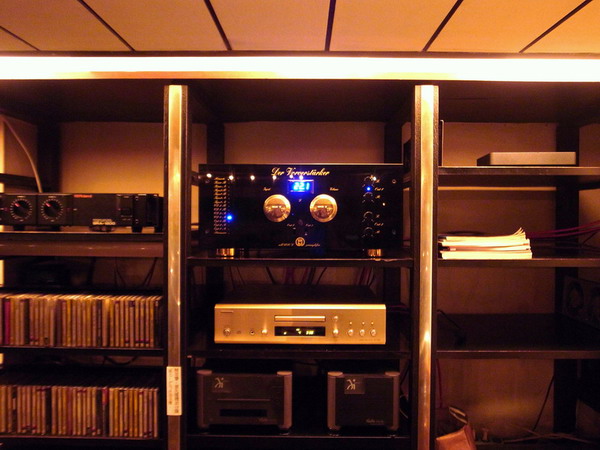 一旁巨大又奢侈豪華的真空管音響雖然頂級但可惜沒特別挑好音樂來播放。