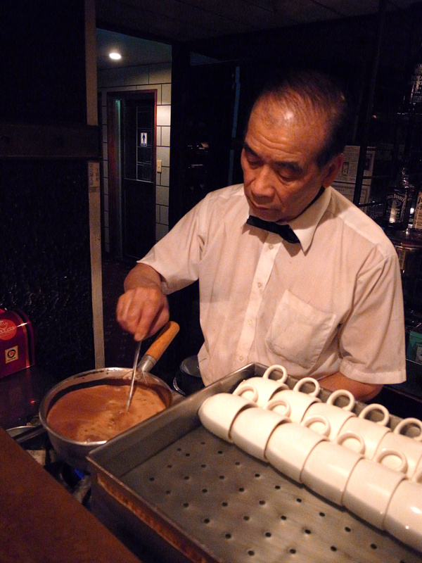 跟服務生點完後馬上跑去吧檯觀賞老師傅精彩的熱可可絕藝,