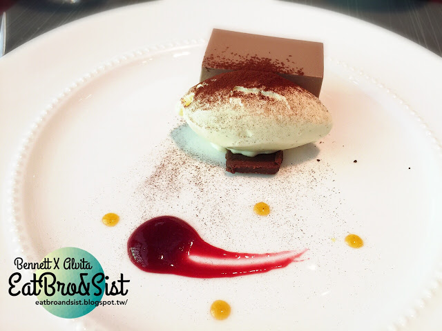 巧克力奶酪搭配一球冰淇淋,還有一抹蔓越莓醬,味道上的搭配不錯,但是奶酪真心太甜了,甚至有點死甜,只能說店家沒有提供什麼甜點的選擇給顧客,至少要把甜點做得讓人不會有挑剔的點。