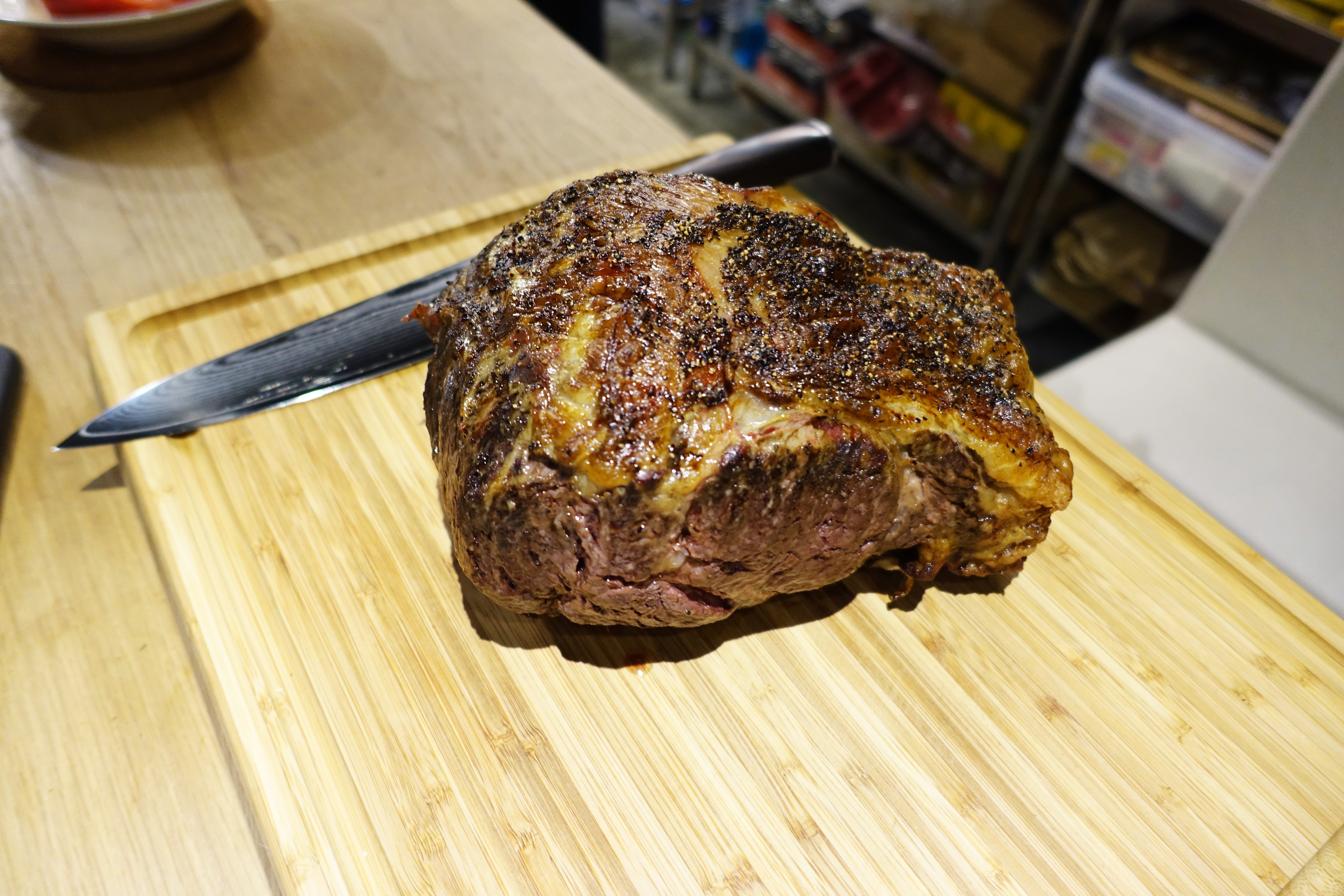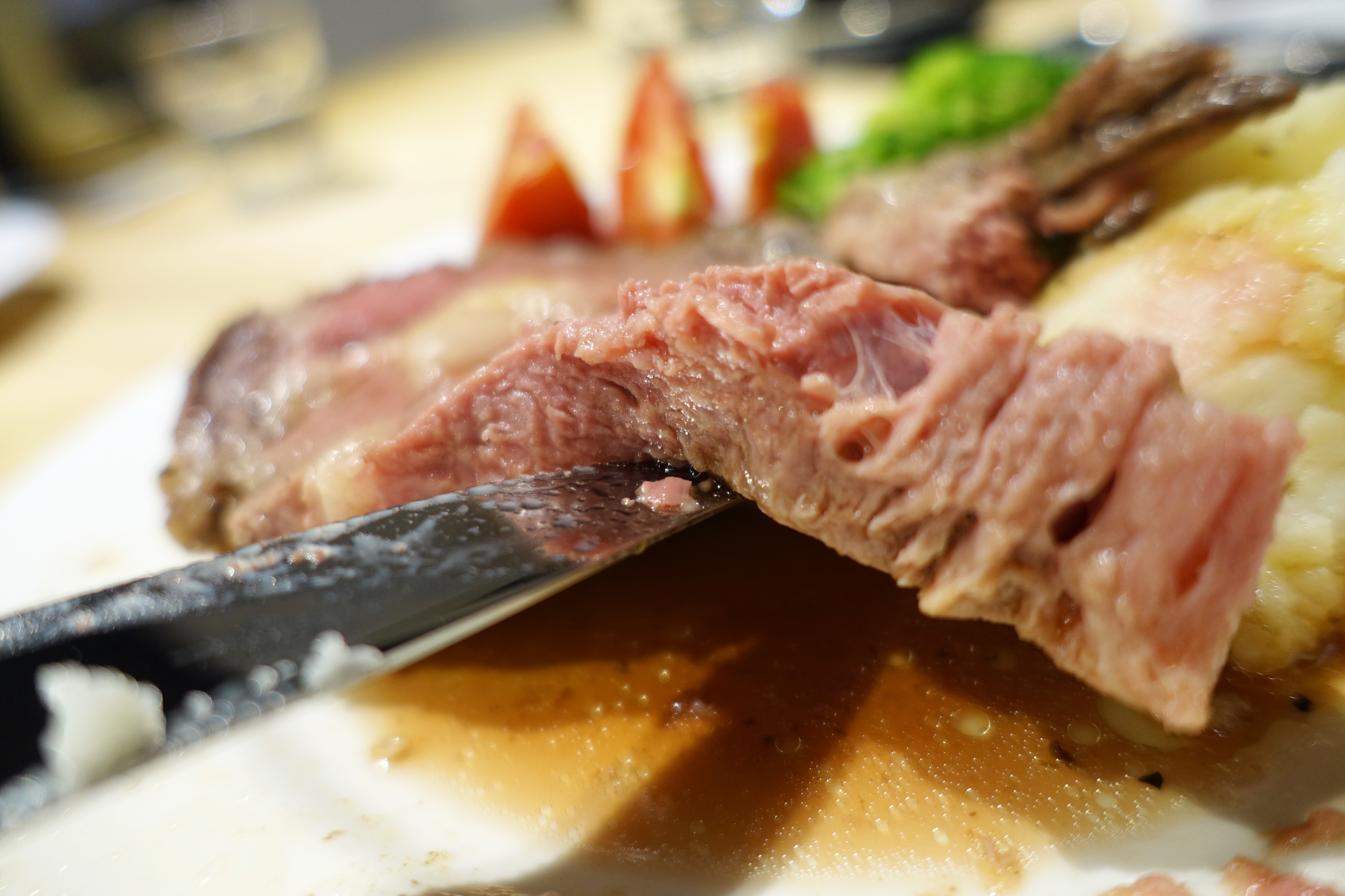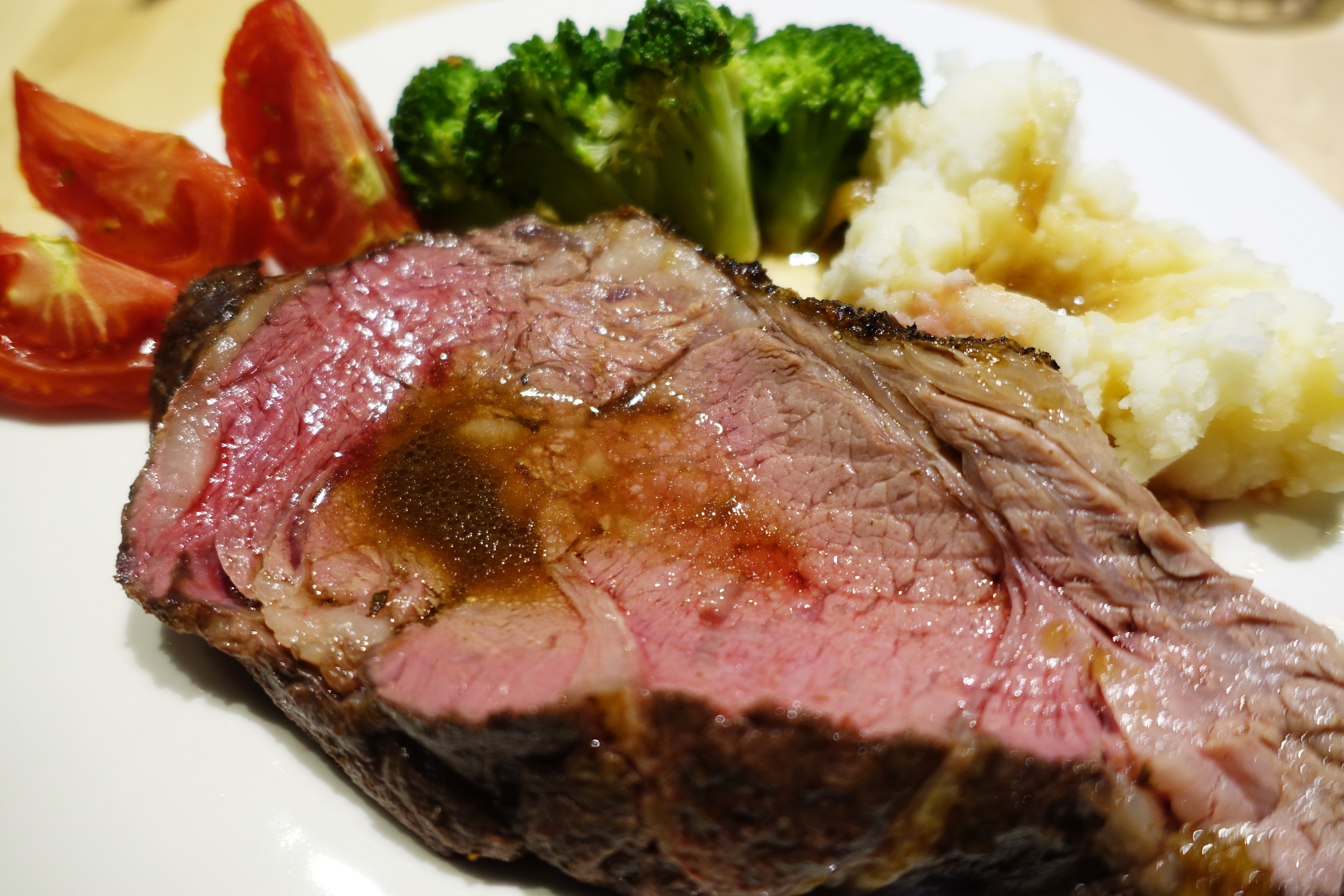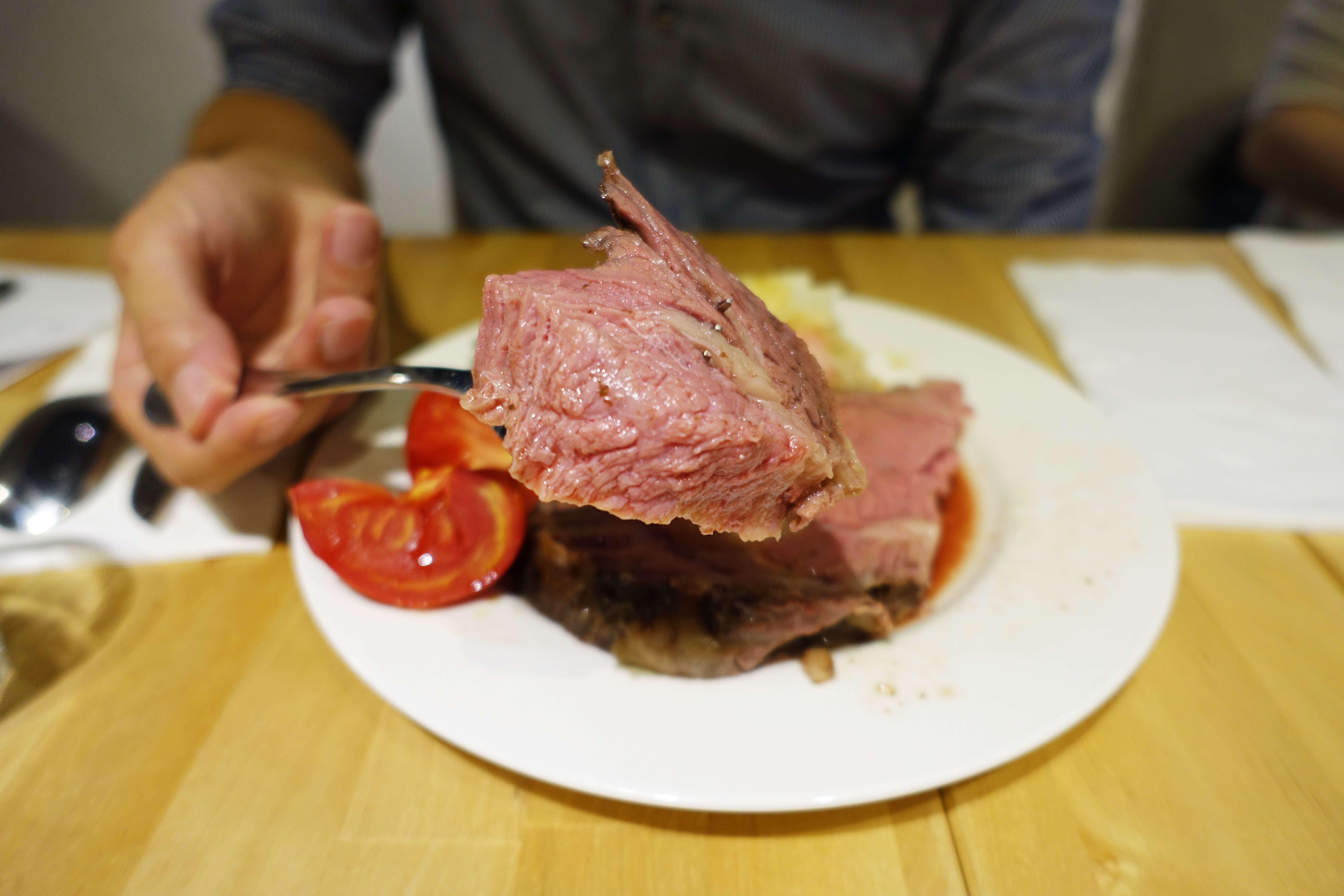 老闆說元食只用冷藏(非冷凍)的肋眼牛肉,當天與廠商叫貨當天料理,用120度慢烤2小時,