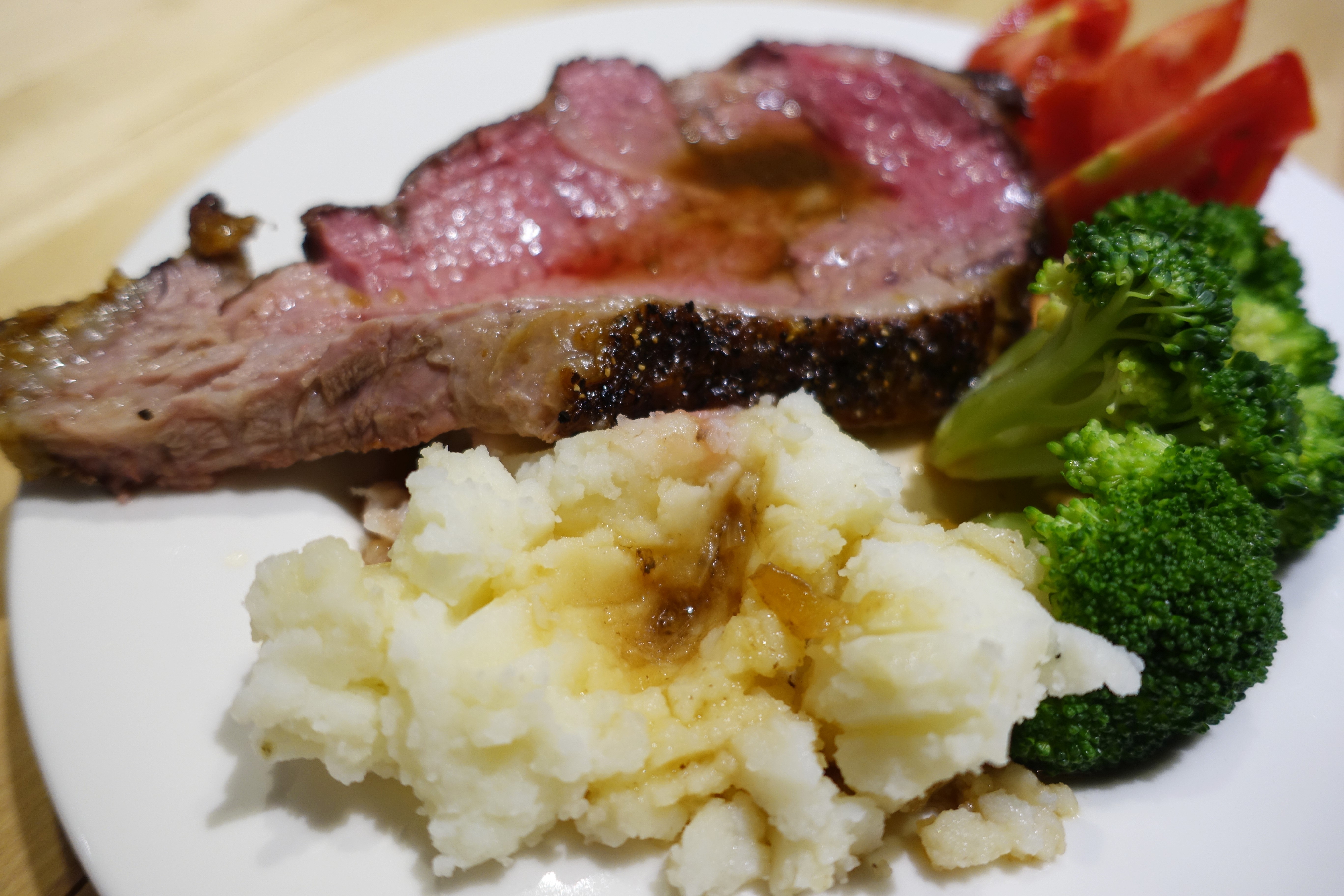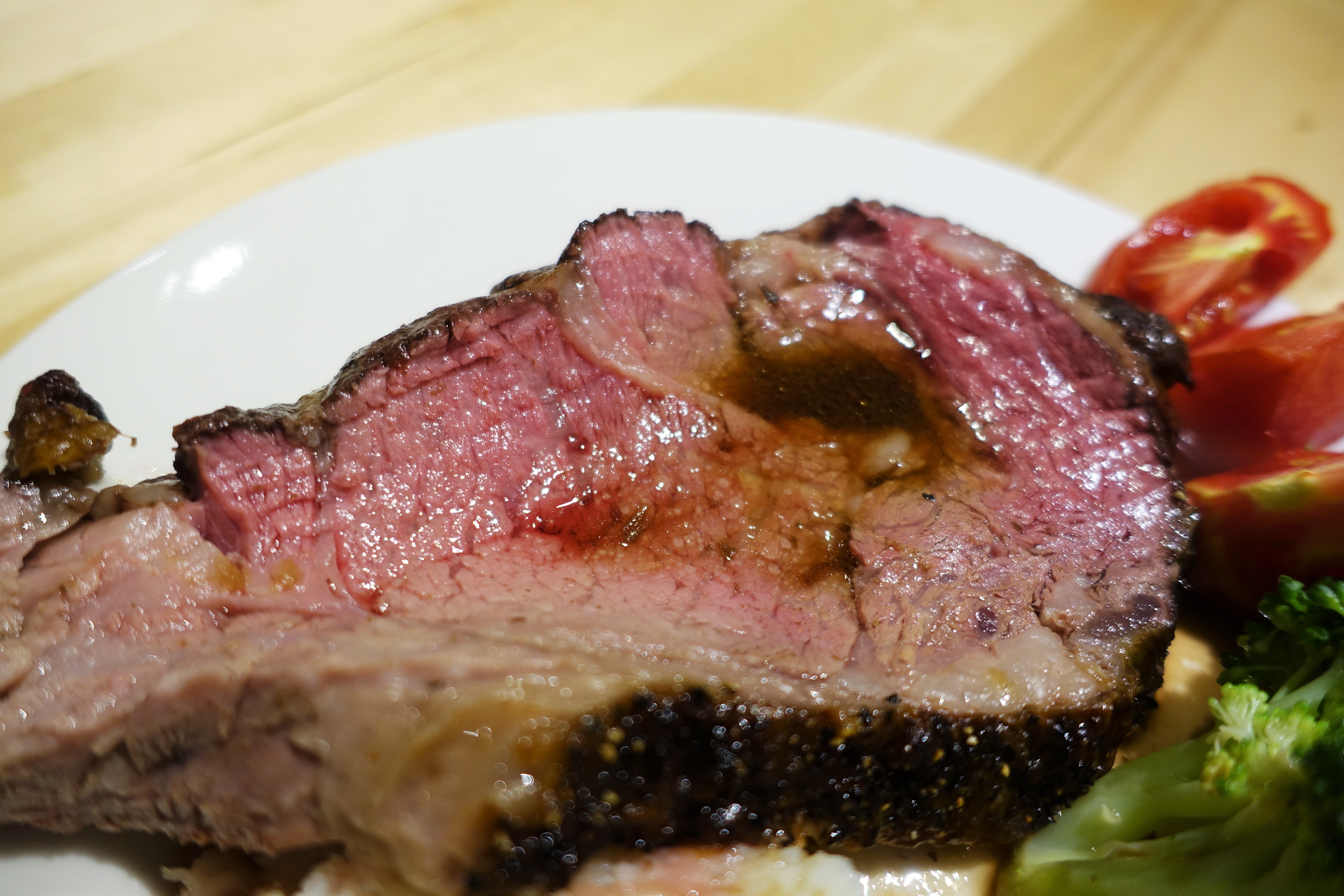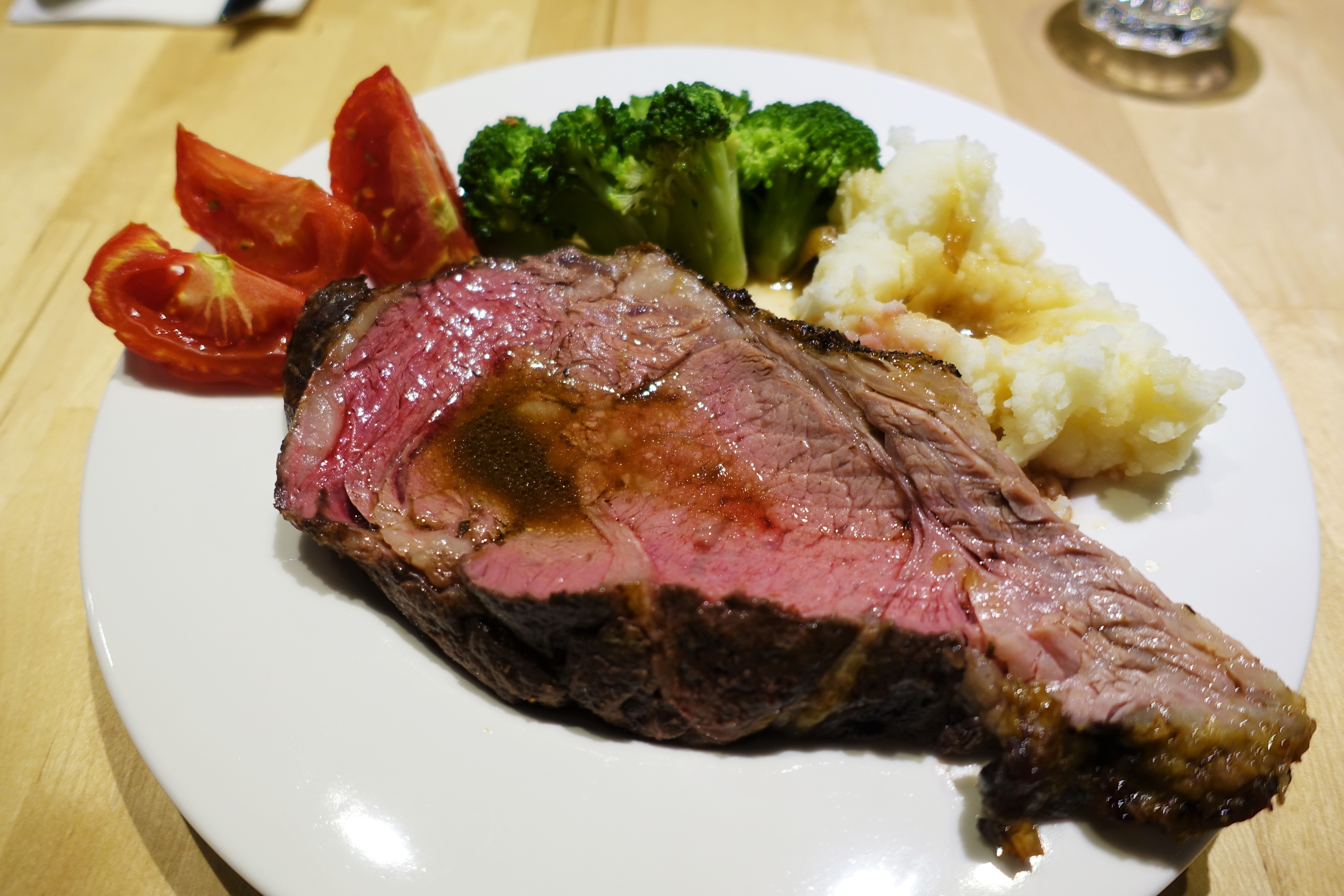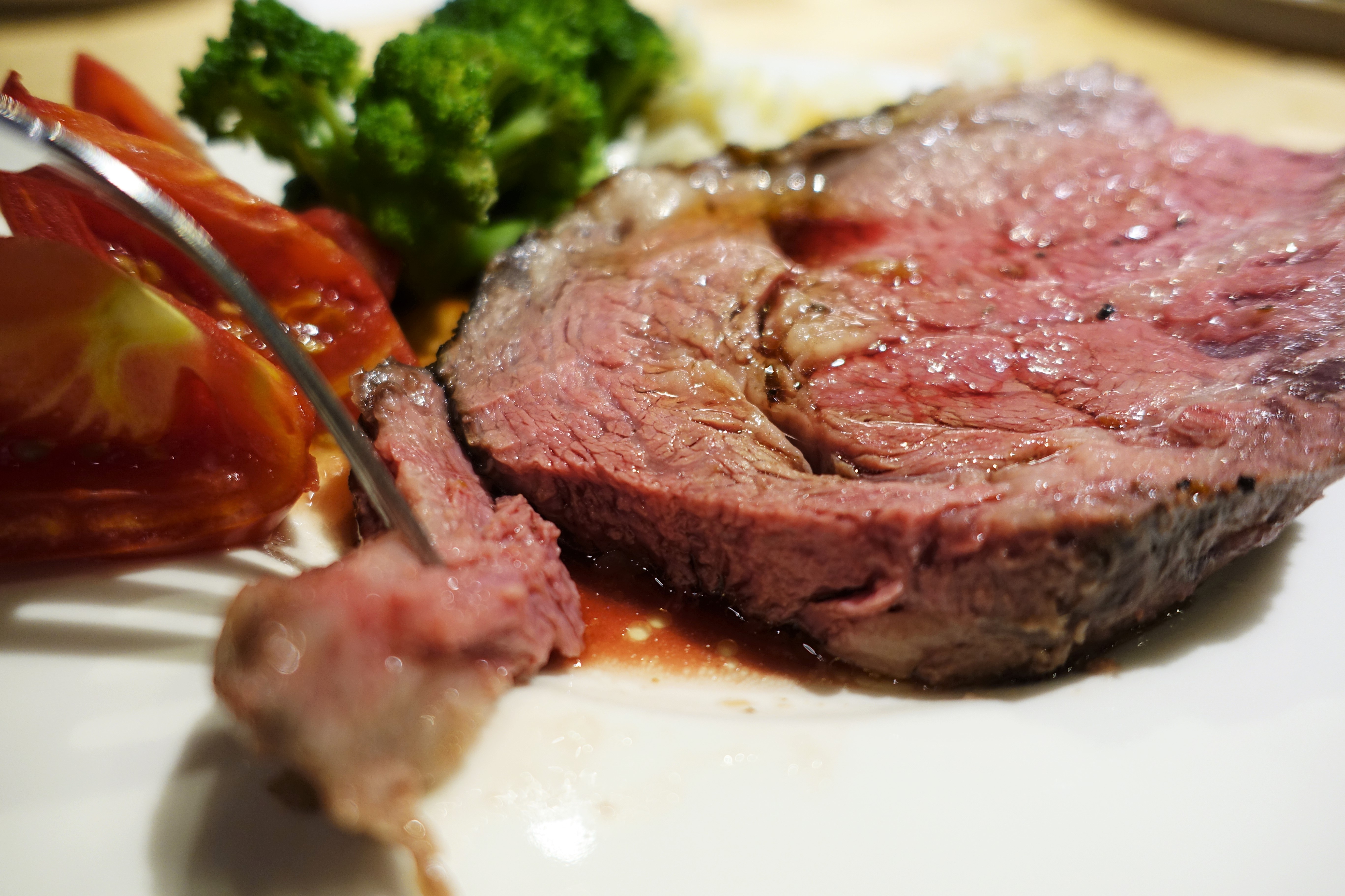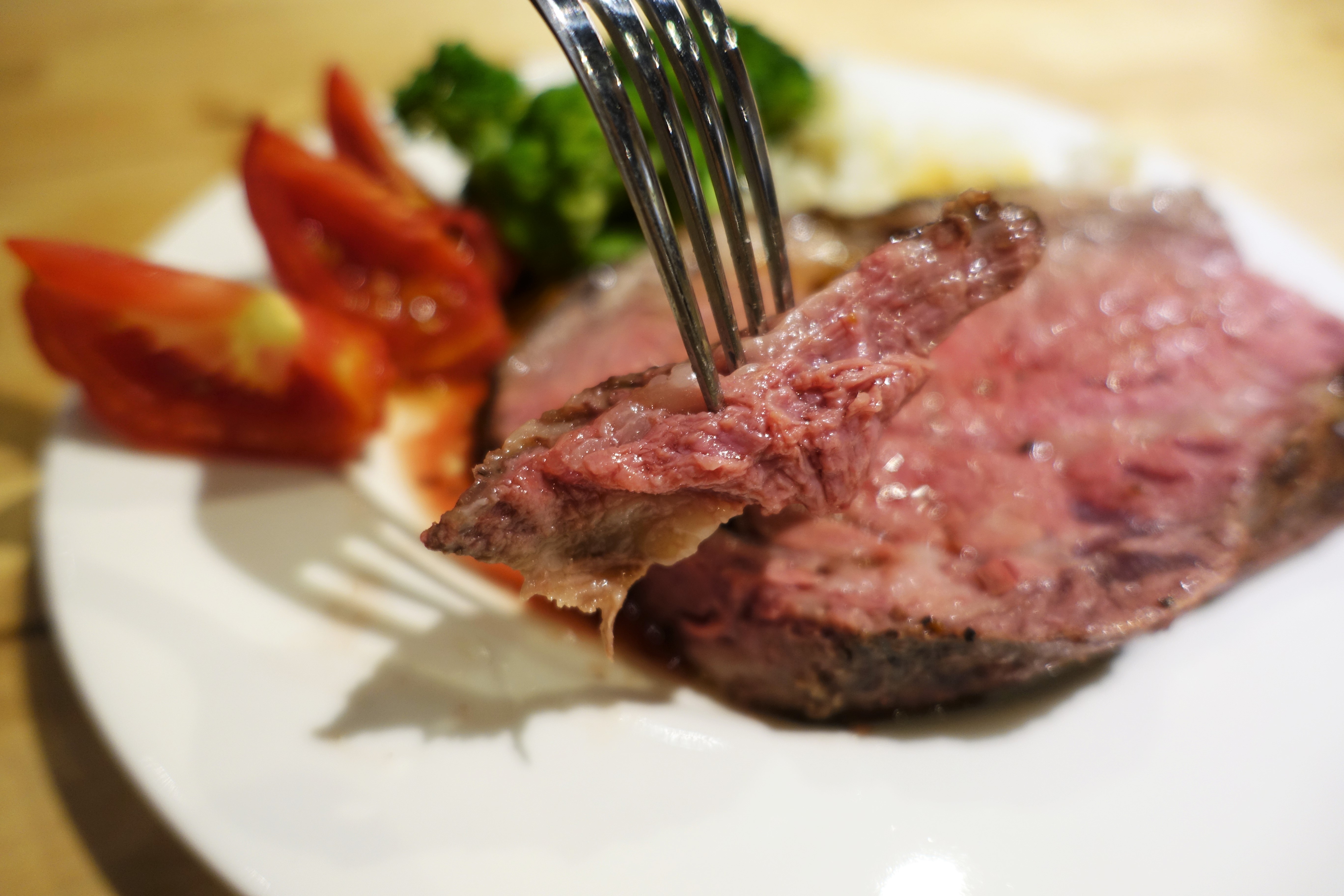 老闆說元食只用冷藏(非冷凍)的肋眼牛肉,當天與廠商叫貨當天料理,用120度慢烤2小時,