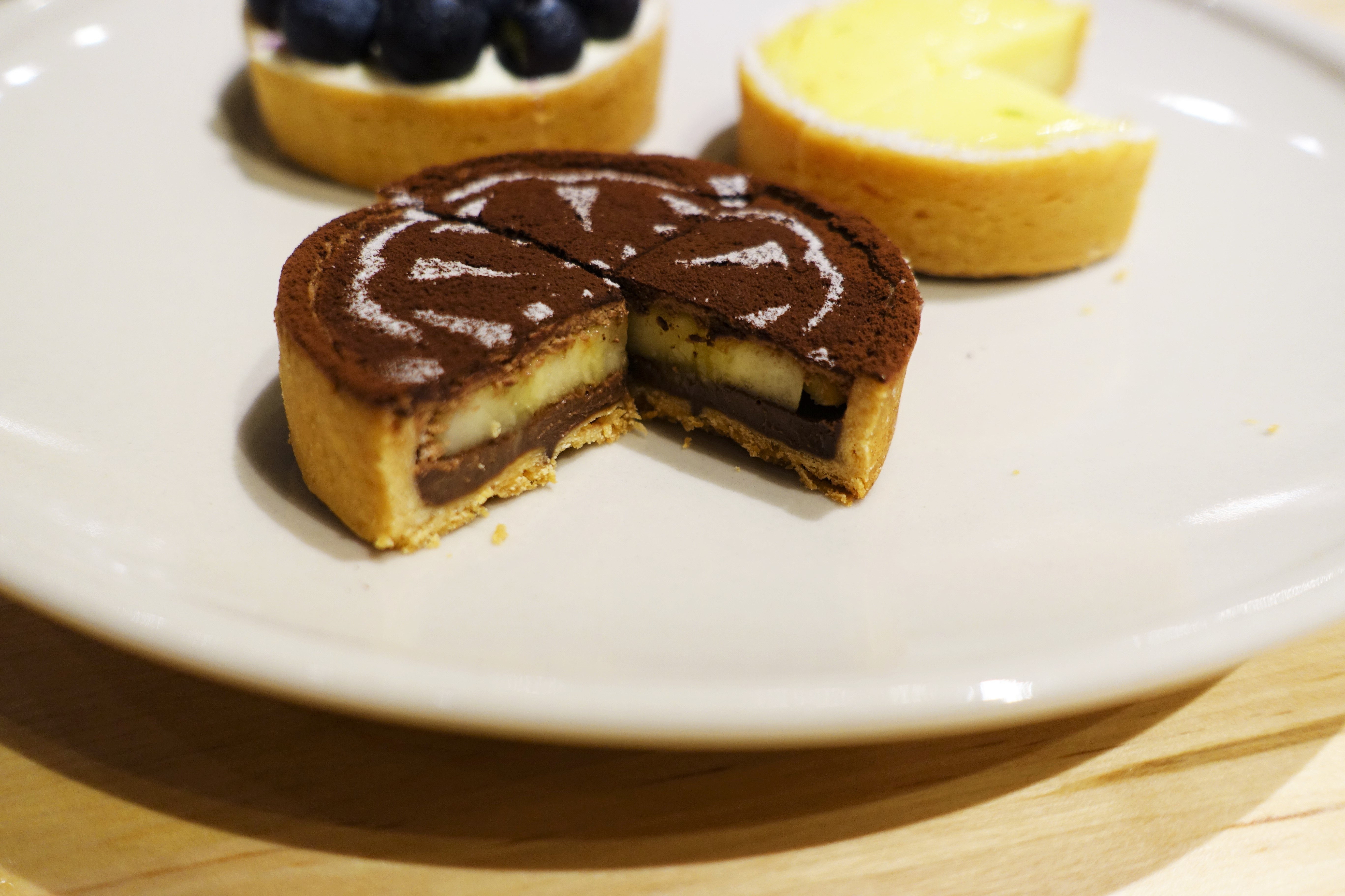 甜點部分我們各點了一個香蕉蛋糕,再加點檸檬塔、香蕉巧克力塔與藍莓乳酪塔各一。