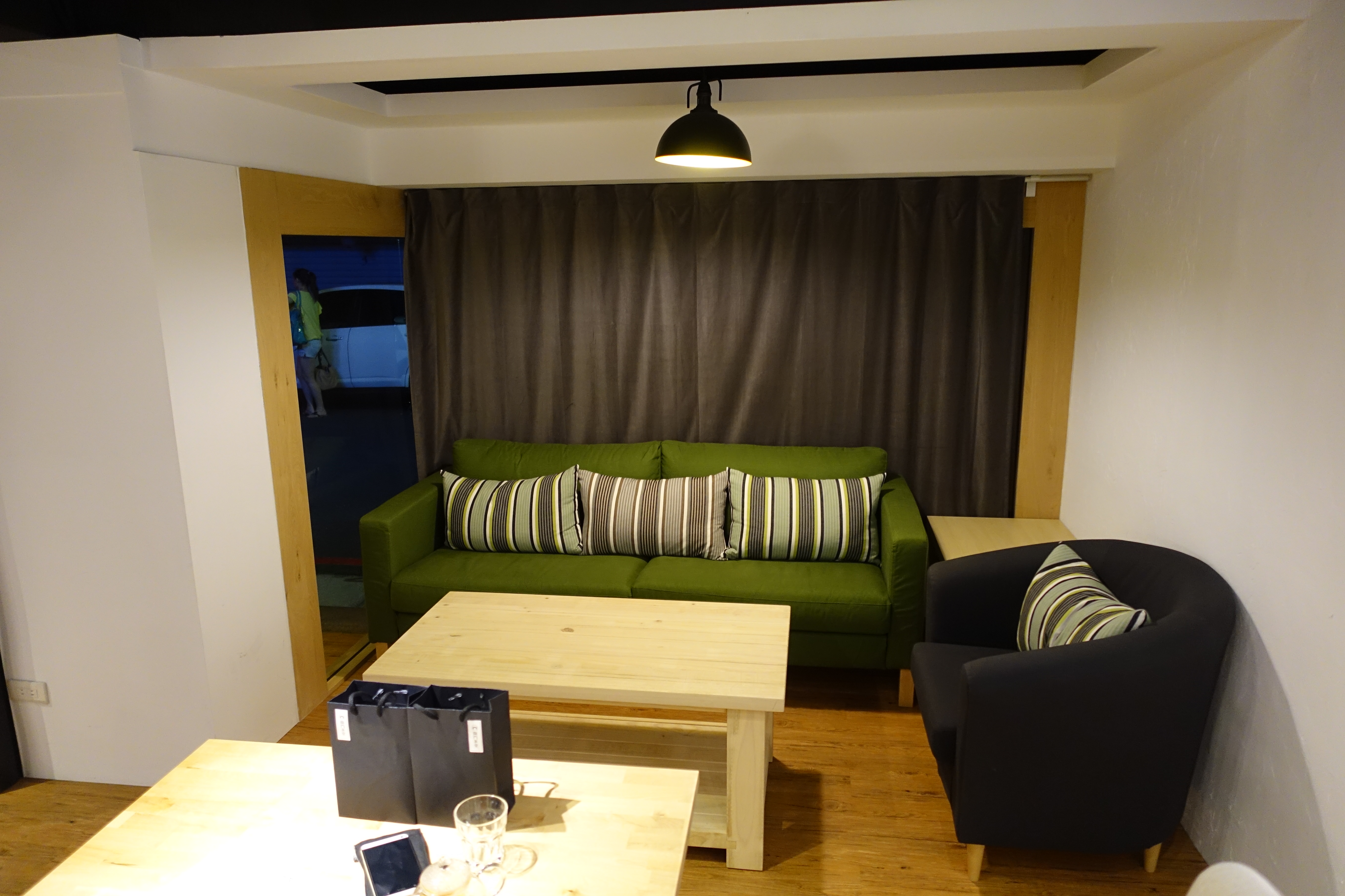 黑色的布簾是投影機的牆,可以給予包場的人使用。