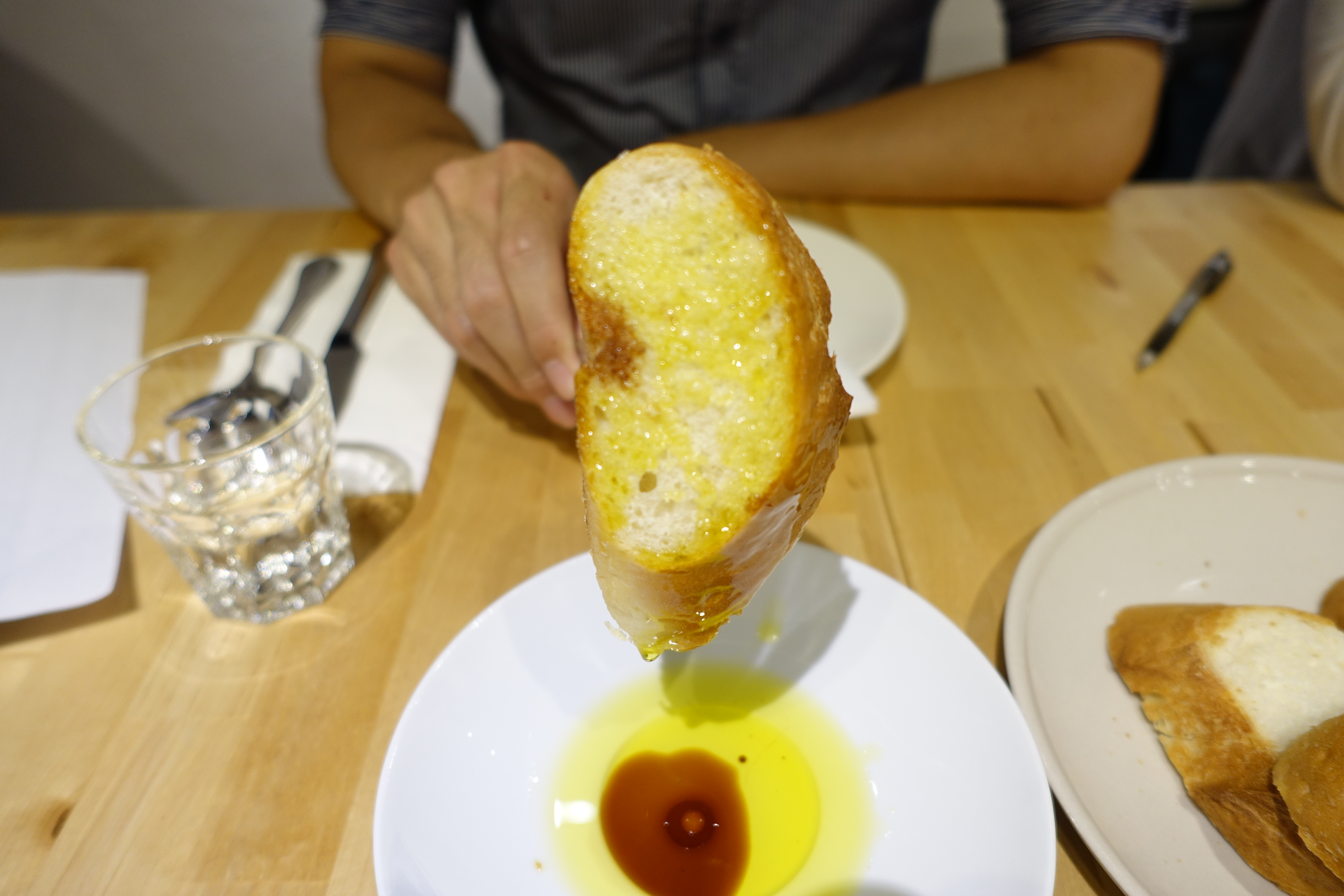 麵包沾醬一上桌朋友立馬說:喔,這是布丁吧XD,其實這道沾醬是橄欖油加酒醋,是西餐常見的麵包沾醬。